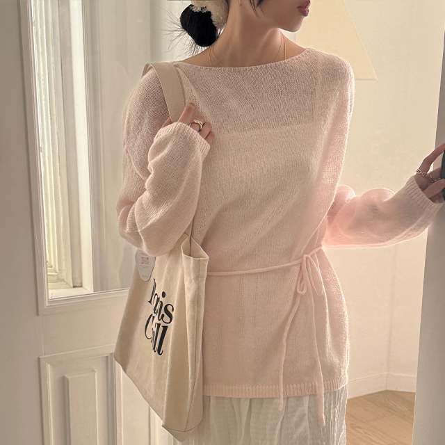 기획특가✨ 엔젤리너스 간절기 울 부클 허리끈 루즈핏 여리여리 니트 (4 colors)