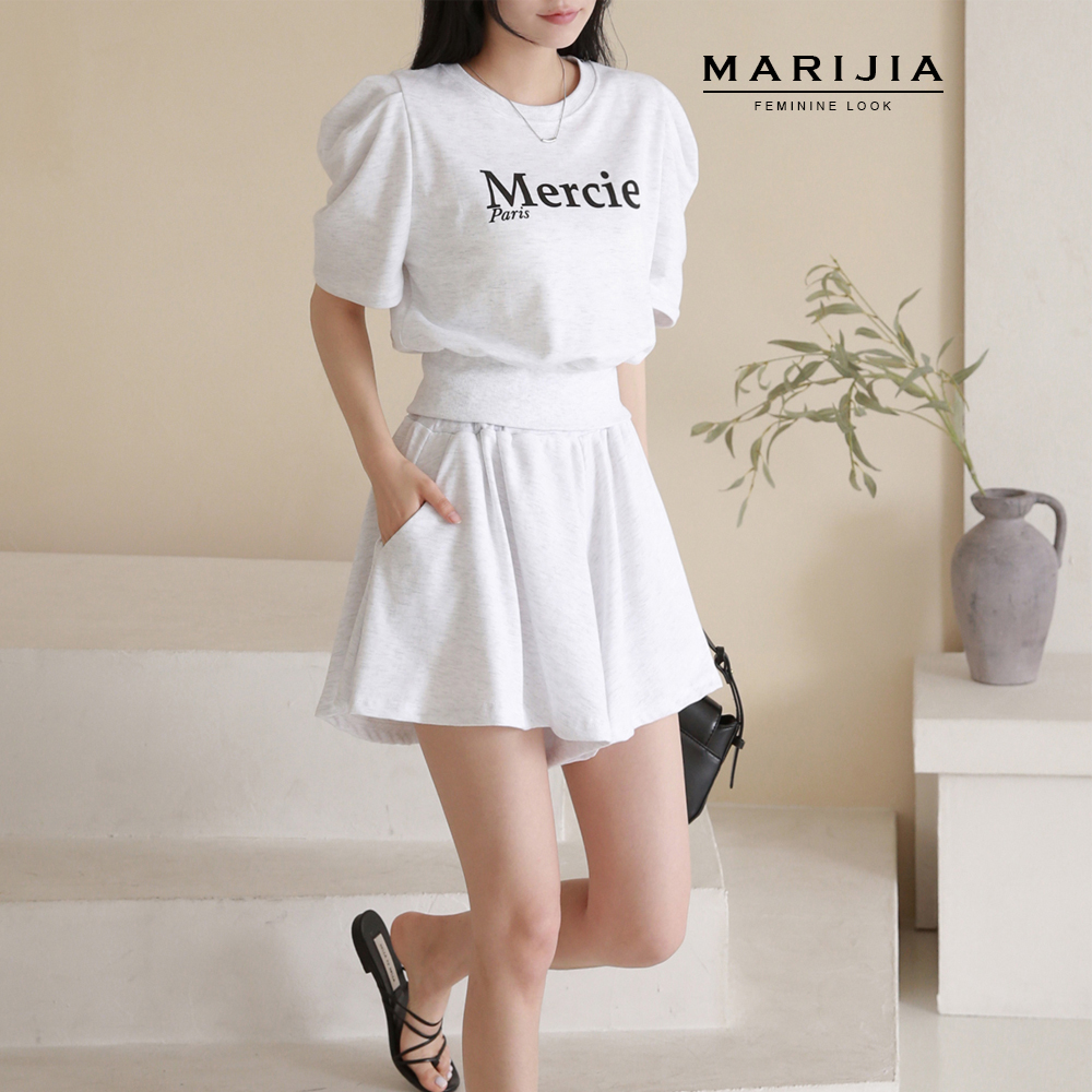 [세트][MARIJIA] 메르시 퍼프 크롭 + 치마 바지 세트_MSTA52011