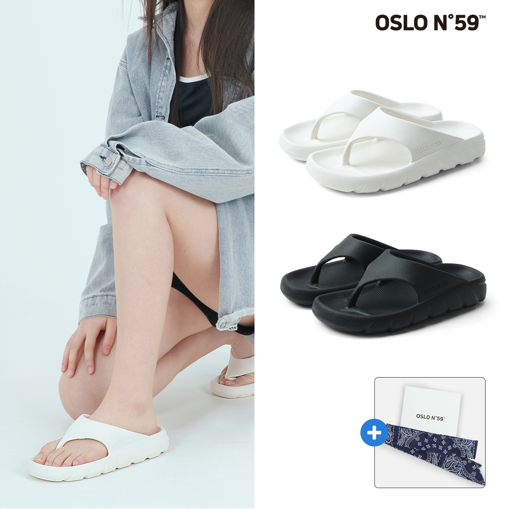 오슬로N59 플립플랍 남녀공용 커플 캠핑신발 바캉스 경량 쿠션 쪼리 스카프세트 발편한 데일리 슬리퍼