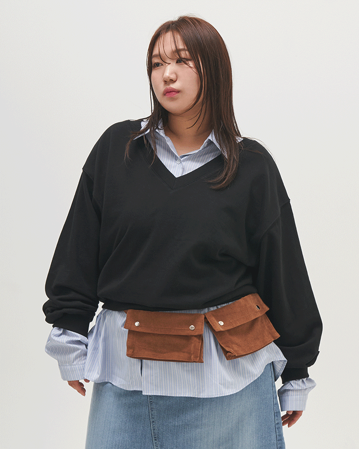 우지 브이넥 오버핏 맨투맨