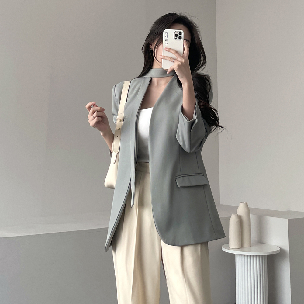 [투웨이/모델소장템🪞] 가나다란 스위키 타이 세트 노카라 브이넥 어깨패드 라인 포켓 하프 자켓 3color