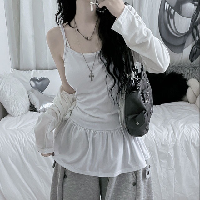 [여리핏/코디템🖤]찰랑프릴레이어드끈나시원피스(3color)