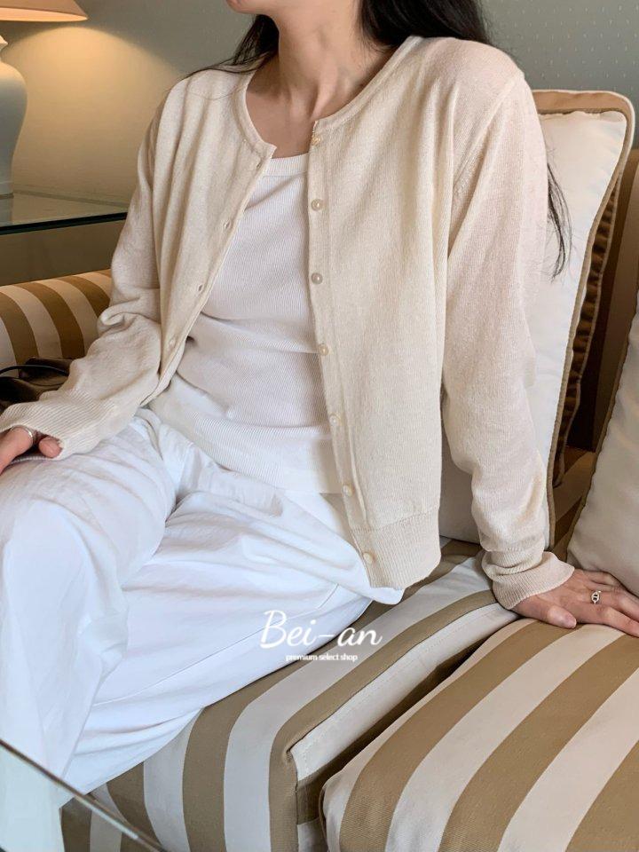 fllanel 플라넬 샤벳 린넨 가디건 라운드 여름 긴팔 크롭 cd (4 color)