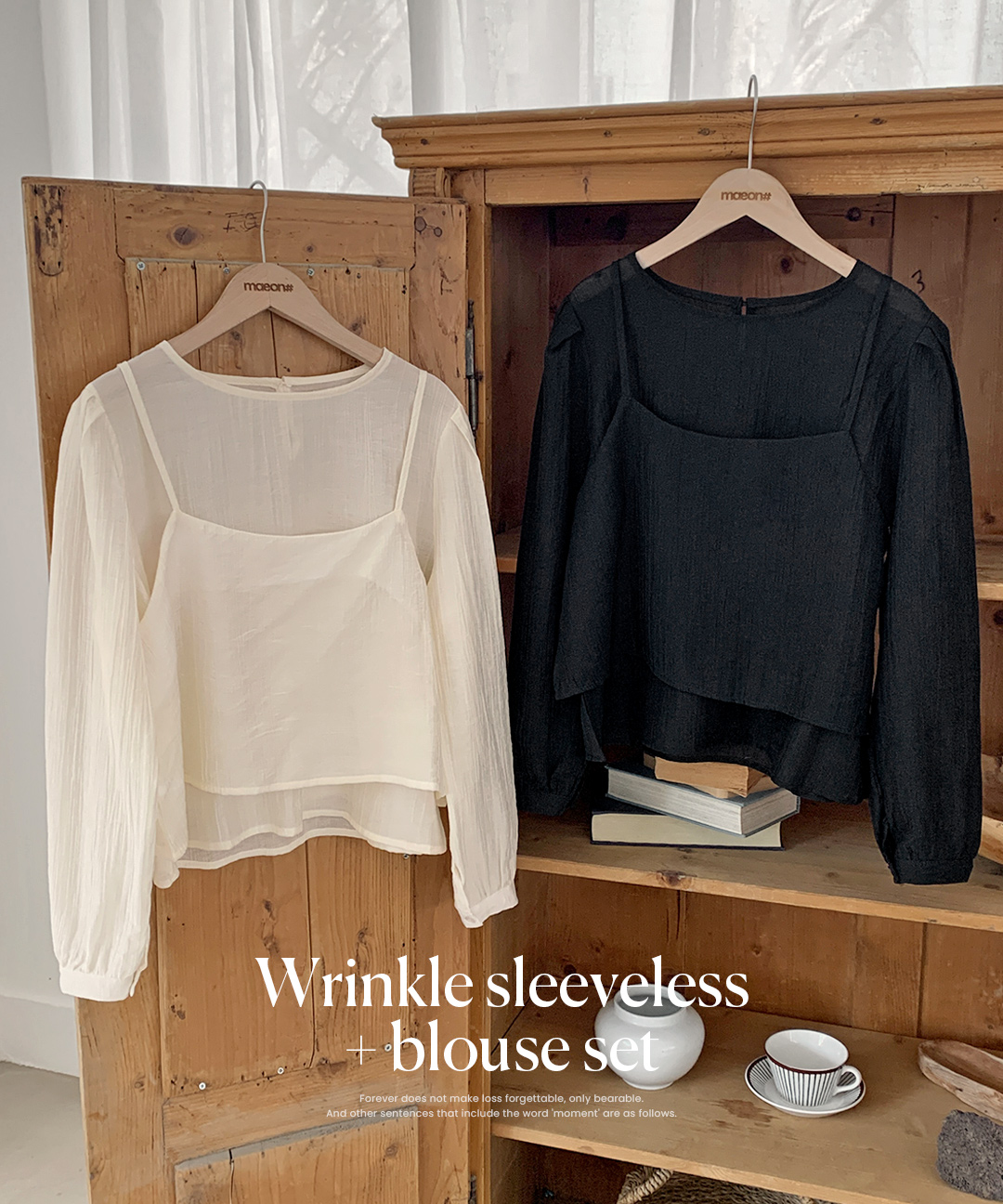 [SET/레이어드] 크덴 링클 나시 블라우스 세트 (44~66) (블라우스뷔스티에세트-레이어드시스루블라우스-하객룩-뷔스티에세트-레이어드코디-상의세트-퍼프블라우스-나시세트)