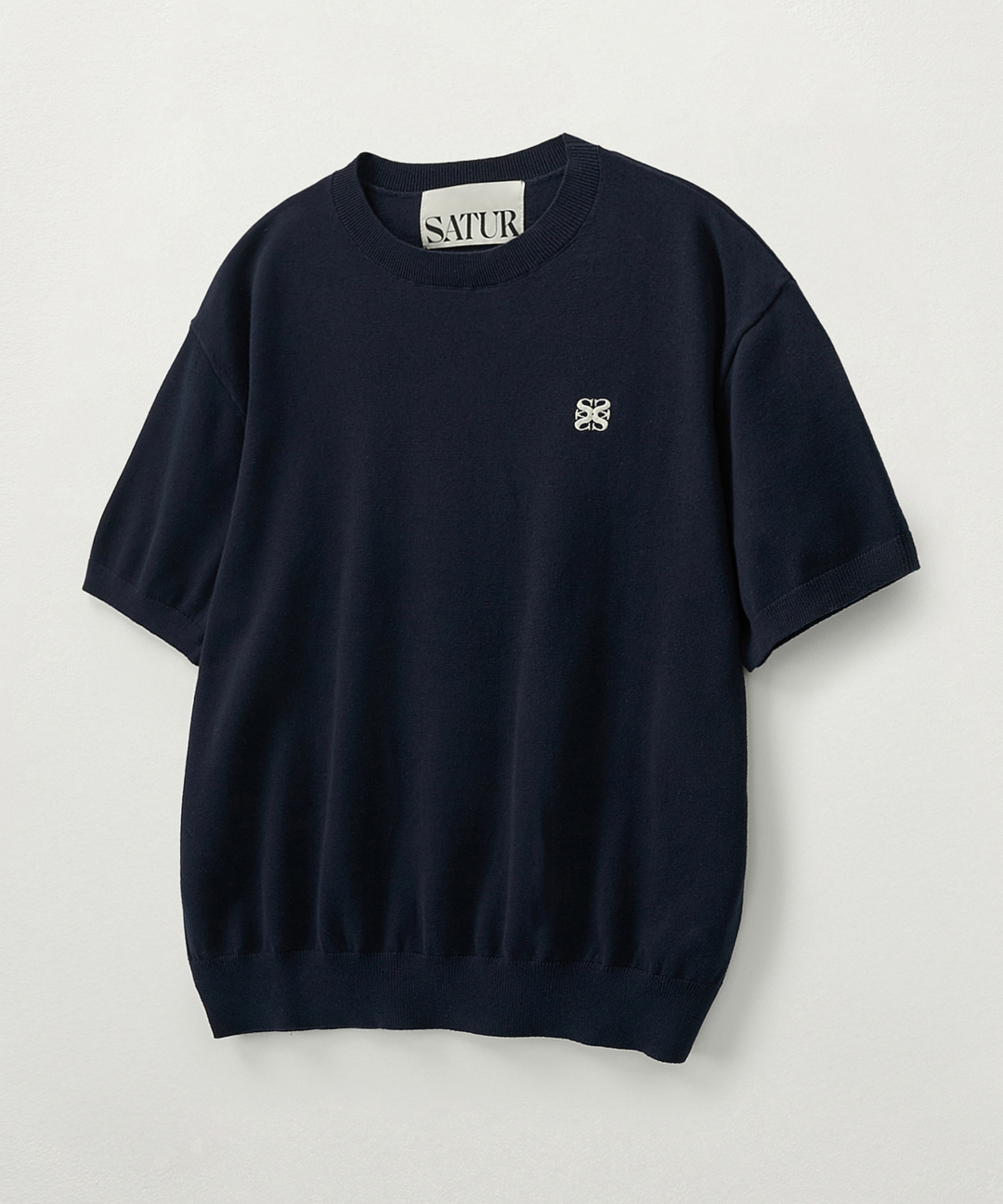 클래식 크루 넥 하프 니트 - 네이비