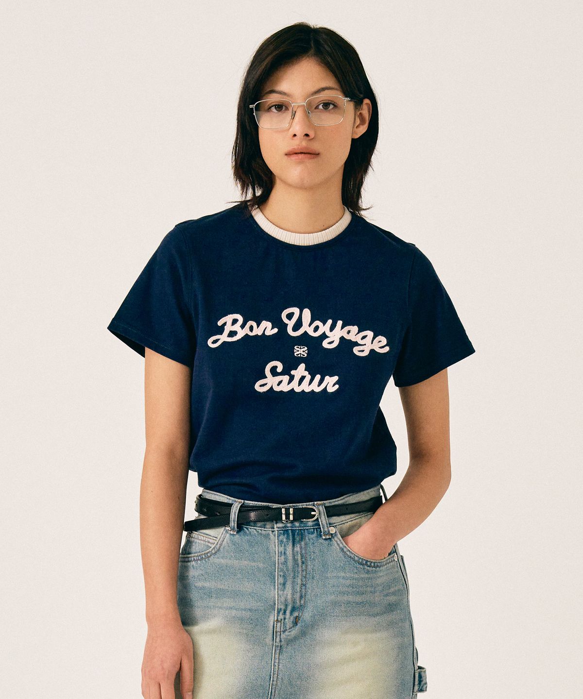 세터 로고 자수 보야지 반팔 티셔츠 - 네이비 핑크