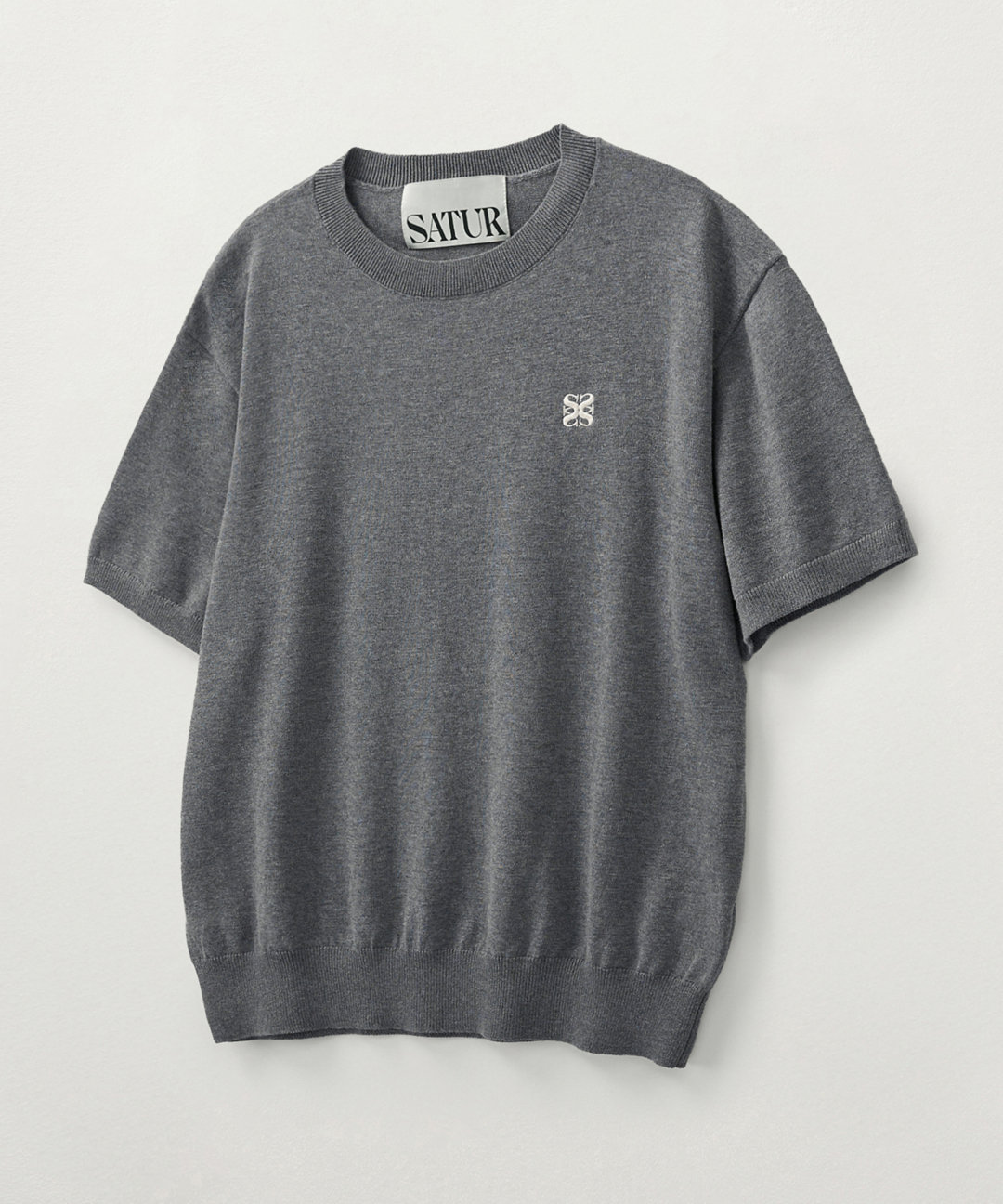 클래식 크루 넥 하프 니트 - 멜란지 그레이