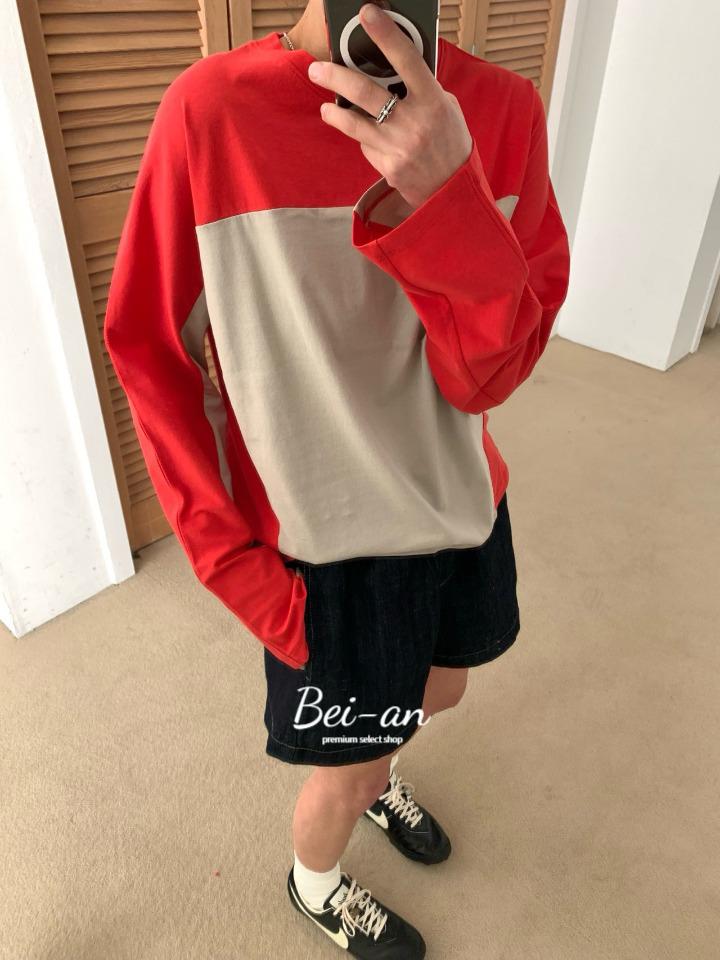 romanticize 로맨티사이즈 패널링 티셔츠 라운드 긴팔 배색 포인트 t (2 color)