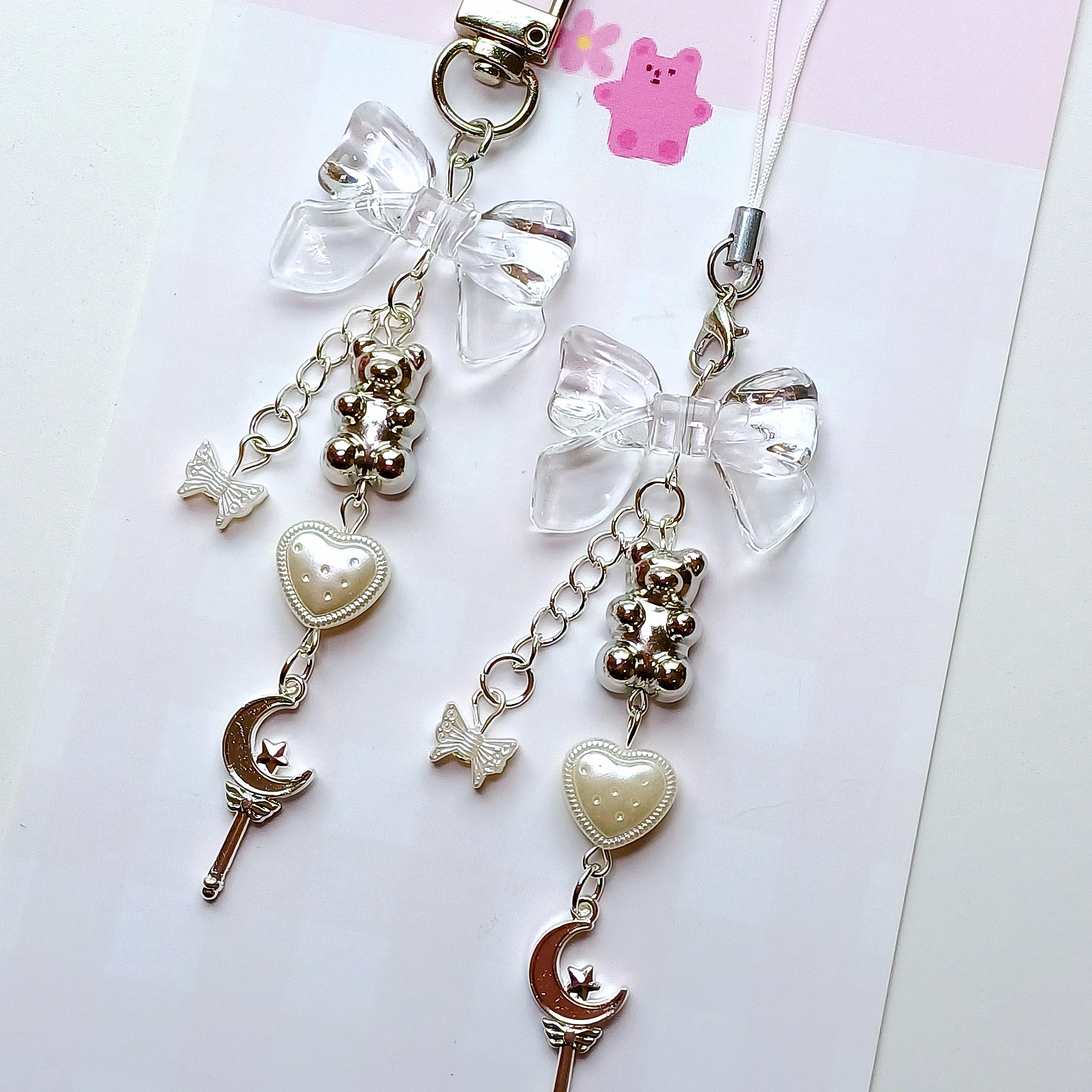 [하트부착고리ෆ증정] 실버 미니 곰 🧸 요술봉 키링 에어팟키링 핸드폰키링 비즈키링 가방걸이 폰꾸 핸드폰줄 바인더키링