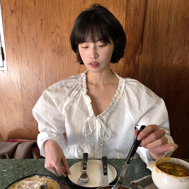 사용X _ 트리앙 프릴 레이스 블라우스(하객룩 블라우스 하객 여름하객룩 하객룩블라우스 살안타템 출근룩 여름 여름옷 상의)