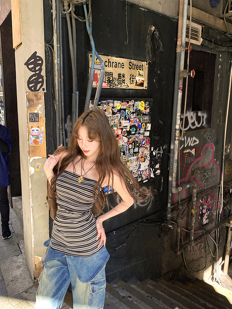 스트라이프 슬림핏 튜브탑 나시 티셔츠 엠지몰SDG629