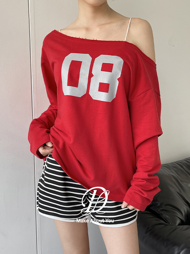 [MADE] 빅사이즈 44-110 에이트 레터링 보트넥 오프숄더 쭈리 맨투맨 긴팔 티셔츠