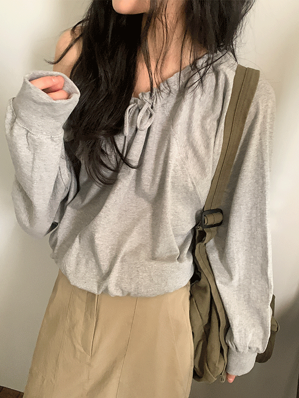 [셔링조절가능] 틸디아 투웨이 오프 셔링 리본 티셔츠