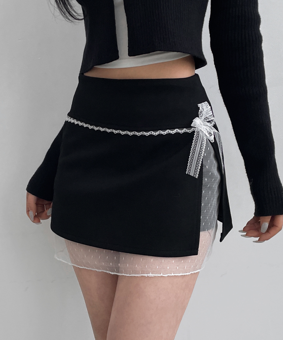 엣티 레이스 리본 레이어드 숏 스커트