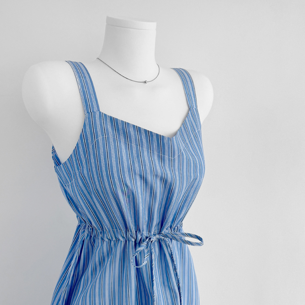 휴가룩🌸캉캉 스트라이프 뷔스티에 나시 롱 원피스
