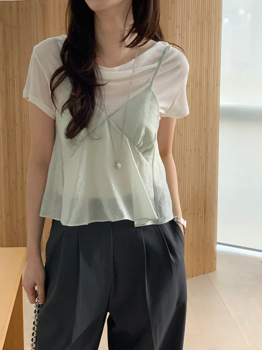 셀비아 레이어드 랩 러플 셔링 시스루 절개 끈 나시 뷔스티에 3color