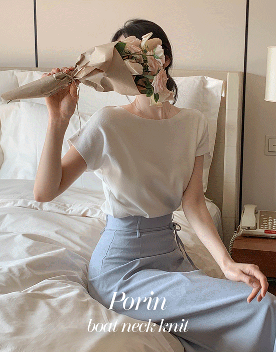 포린 여리 보트넥 니트(캡소매/입술넥/세미루즈핏/세미크롭/데일리룩/데이트룩/오피스룩/출근룩)