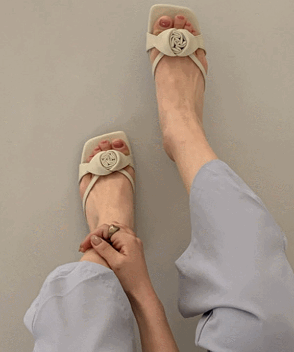 [바배] 엘버 플라워 포인트 스퀘어넥 심플 페미닌 슬리퍼 (블랙,베이지,레드)