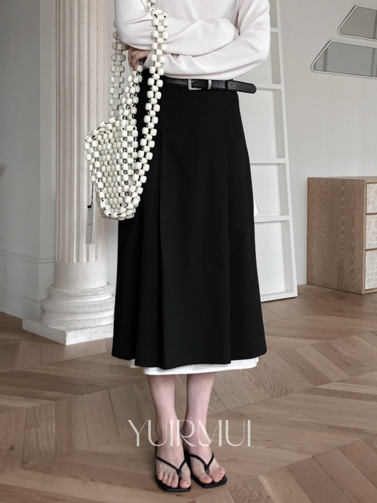 Le Butter 르버터 더블 핀턱 레이어드 일자 A라인 롱 스커트 2color