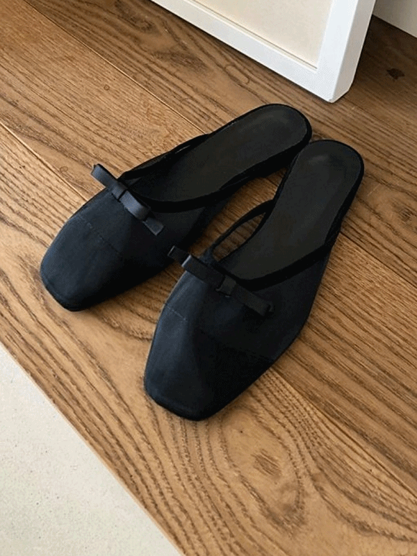 [뮬 플랫 선택] 블랙 매쉬 망사 쿠션 단화 시스루 리본 뮬 슬리퍼 플랫슈즈