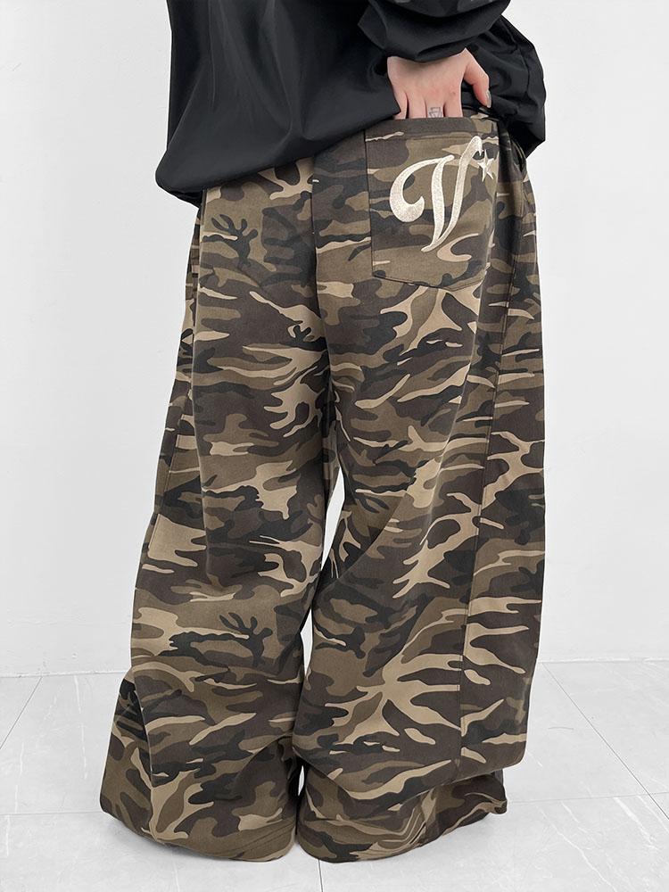 [Unisex/봄신상/2color]와이드 루즈핏 브이 로고 레터링 자수 밀리터리 카모 트레이닝 봄팬츠 가을하의 긴바지 와이드팬츠 고퀄리티티 수학여행 커플바지 남녀공용 밴딩 조거팬츠