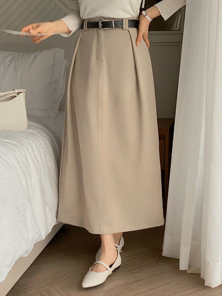 [하비구원핏/체형보완][25-38] 베디얼릿 핀턱 뒷트임 벨트 롱 스커트 (봄-신상-데일리룩-데이트룩-여행룩-빅사이즈-하객룩-출근룩-오피스룩-하객룩-자체제작-벨트스커트)