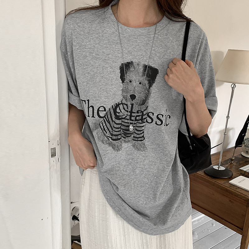 [캐주얼무드✔/이지룩/100사이즈]레소 퍼피 프린팅 라운드 오버핏 반팔 티셔츠 - 4 color