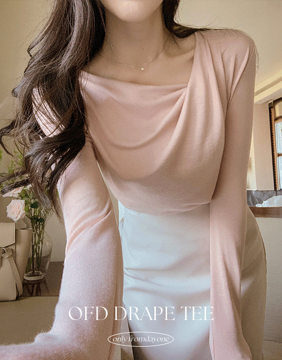 단독)오브디 드레이프 허리잘록 티셔츠(언발란스/셔링/밑단굴림/세미크롭/슬림여리핏/데일리룩/데이트룩/출근룩/오피스룩/하객룩)