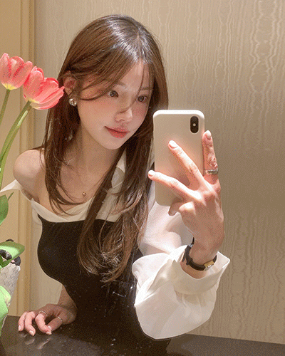 [🌸봄신상]체프 배색 오프숄더 블라우스 - 2color 하객룩/격식/오프숄더블라우스/배색블라우스/긴팔/블라우스