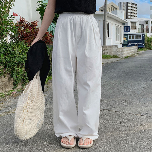 [3color/~XL] 하비 올밴딩 핀턱 와이드 면바지 일자 남녀공용 빅사이즈 코튼 팬츠