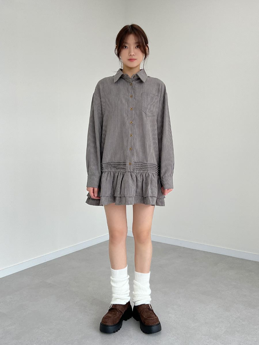 [빈티지무드/직진배송] 잔 스트라이프 카라 셔츠 미니 캉캉 원피스 (2color)