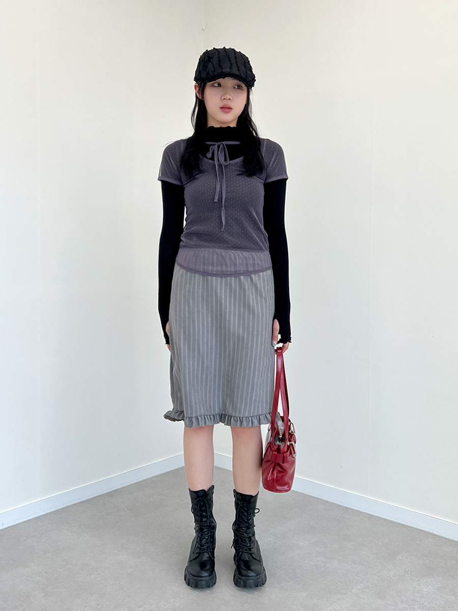 [여름치마/직진배송] 메이 스트라이프 프릴 레이어드 미디 스커트 (3color)