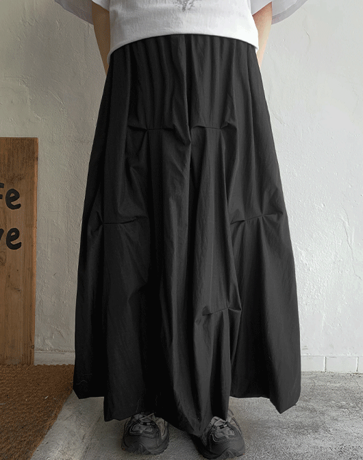 카아 벌룬 핀턱 나일론 롱 스커트 (2color)