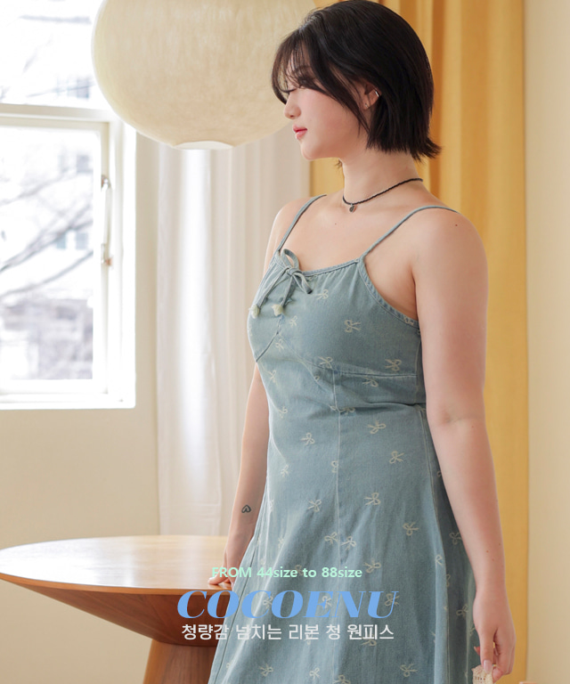 [단독][빅사이즈44-88] 무료배송 리본데님원피스 (플러스사이즈 하객룩 데일리 미니 롱 청 원피스 피크닉 여행 비치 휴양지 청롱 청청 동남아 축제 개강룩)