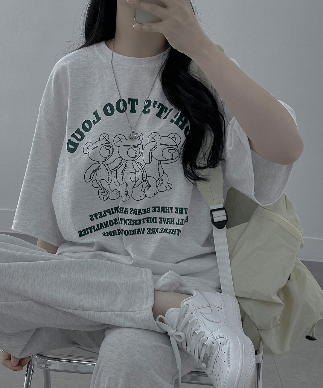 [❤주문폭주❤/unisex/빅사이즈] 스티치 베어 프린팅 여자 반팔티 스트릿 루즈핏 박스티