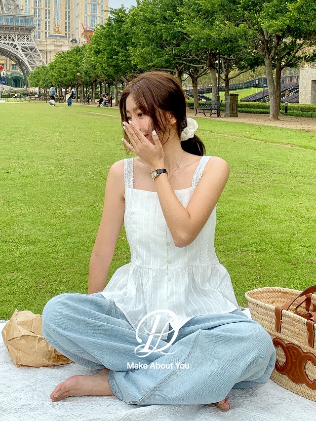 [1천장돌파][MADE] 빅사이즈 55-100 프빈 코튼 레이스 스트랩 뷔스티에 시스루 프릴 플레어 민소매 블라우스