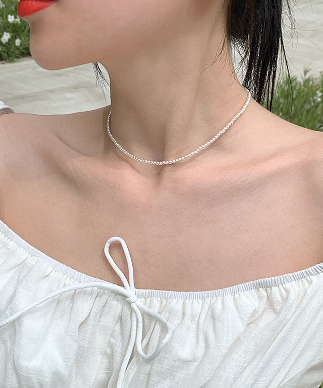 심플 진주 초커 목걸이 1color / 봄 여름 개강룩 휴양지 하객 네크리스 비즈 빈티지 레이어드 볼 데일리 짧은 y2k 유니크 발레코어 아이보리 화이트