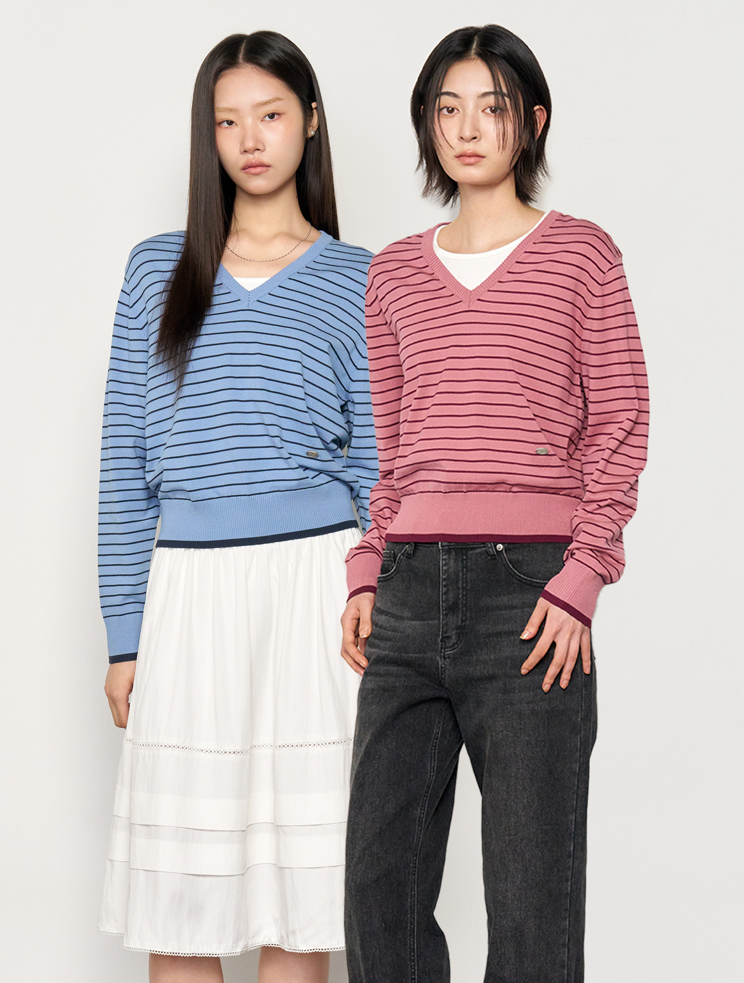 WOMAN 브이넥 스트라이프 풀오버 [4COL]