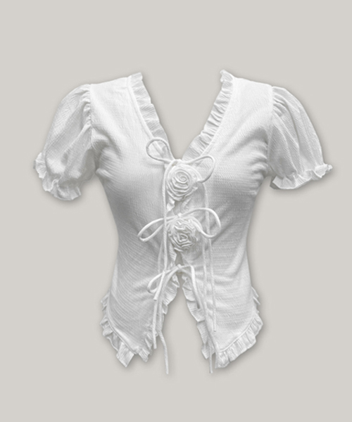 케리 로즈 코사지 퍼프 블라우스