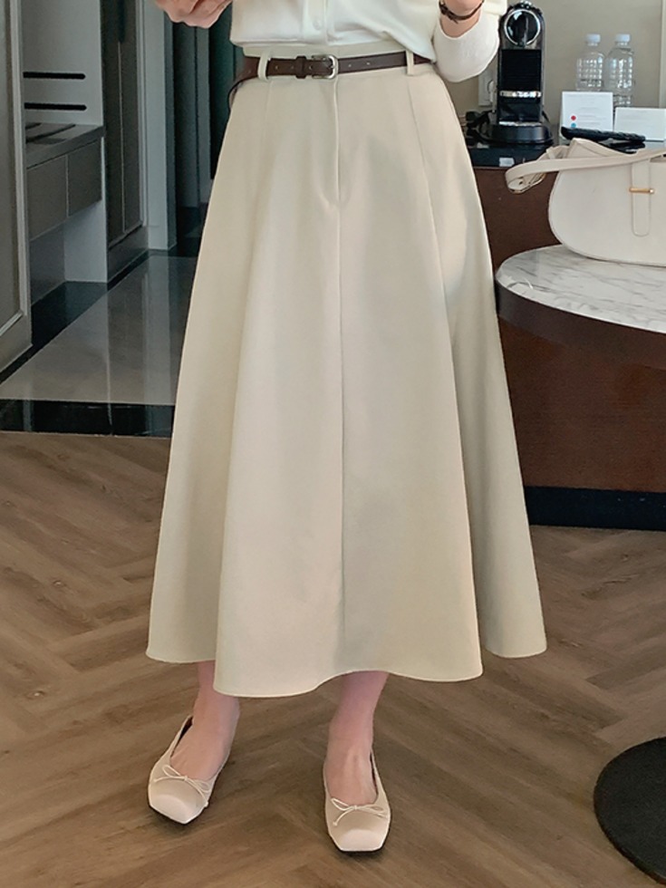 [클래식모던/체형커버][25-38] 실리뷰 뒷밴딩 플레어 롱 스커트 (봄-가을-신상-데일리룩-데이트룩-하객룩-격식룩-빅사이즈-38사이즈-자체제작-치마-벨트고리)