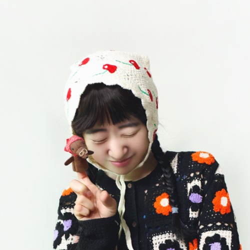 상큼한 체리 물결끝단 뜨개 니트 케이프 두건n0326