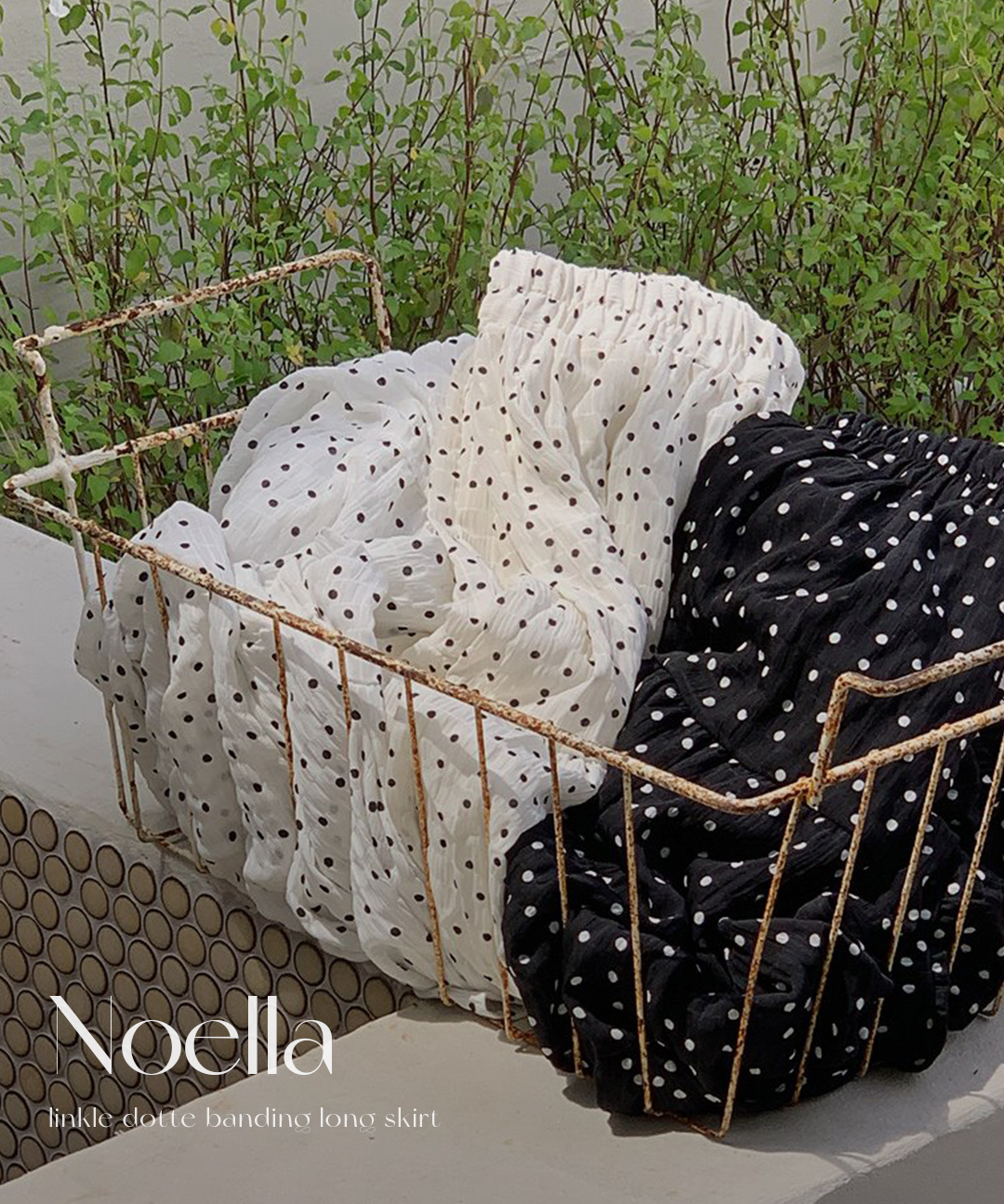 [컬러추가💗][살랑여리핏][MADE] 노엘라 링클지 도트 캉캉 밴딩 롱스커트 (44~99) (빅사이즈스커트-밴딩롱스커트-캉캉스커트-체형커버-도트스커트-링클프리-땡땡이원피스)