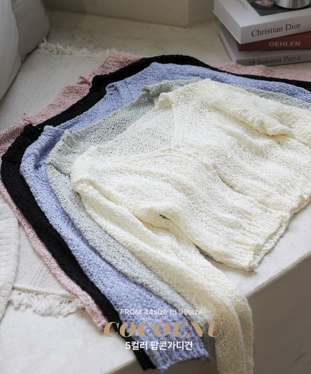 [단독] 팝콘 가디건 (빅사이즈 크롭 살안타 데일리 비치웨어 여름가디건 여행룩 모임룩 데일리룩 그물 블루 화이트)
