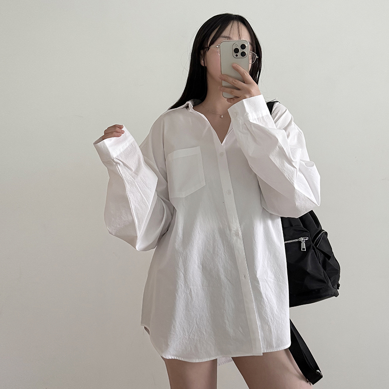 5XL 빅사이즈 올데이 오버핏 언발 롱셔츠 셔츠원피스