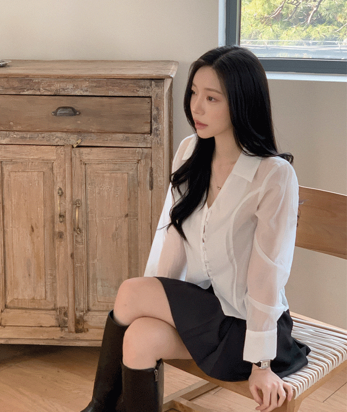 비앙 브이카라 시스루 실키 텐셀 레이어드 라인 긴팔 셔츠 블라우스