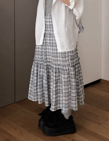 [빈티지/러블리] 윌리온 체크 캉캉 프릴 롱 밴딩 스커트