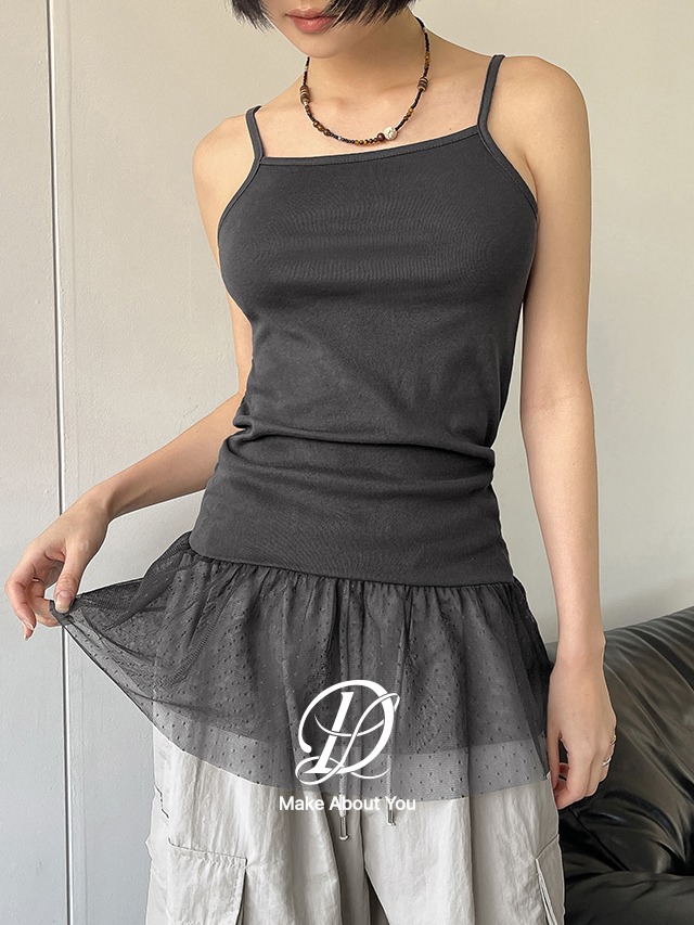 [2천장돌파][MADE] 빅사이즈 44-110 버밍 시스루 도트 프릴 레이스 캉캉 레이어드 끈 나시 발레코어 룩