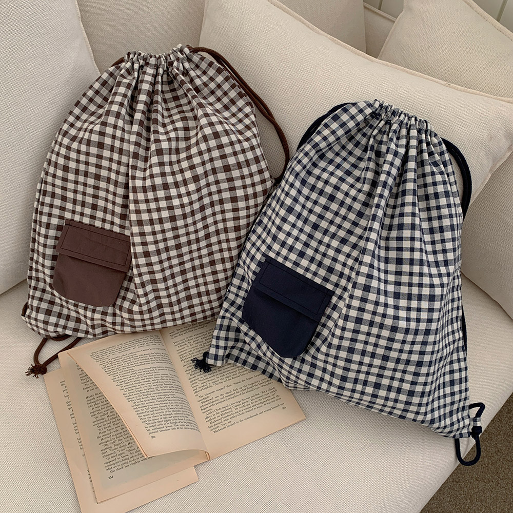 어바니 고방 체크 포켓 스트링 짐색 대학생 가방 캐주얼 봄 백팩