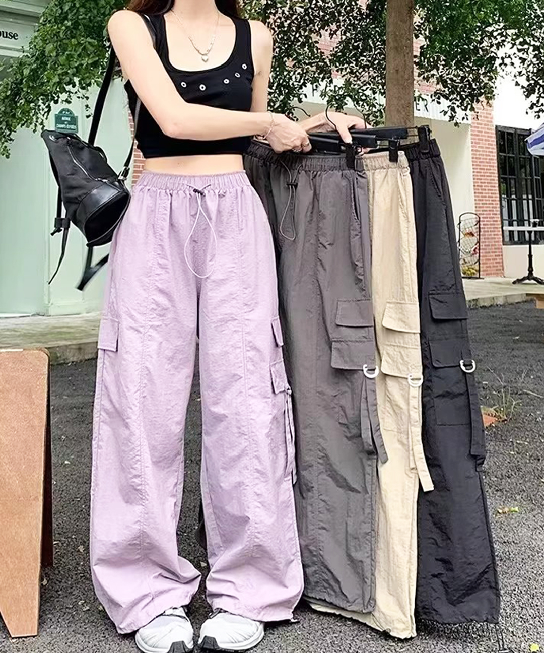 메이킹유 [4color/조거팬츠] 스트릿 바스락 포켓 스트링 카고 조거 와이드 여름 밴딩 팬츠 09413브엘즈팬츠