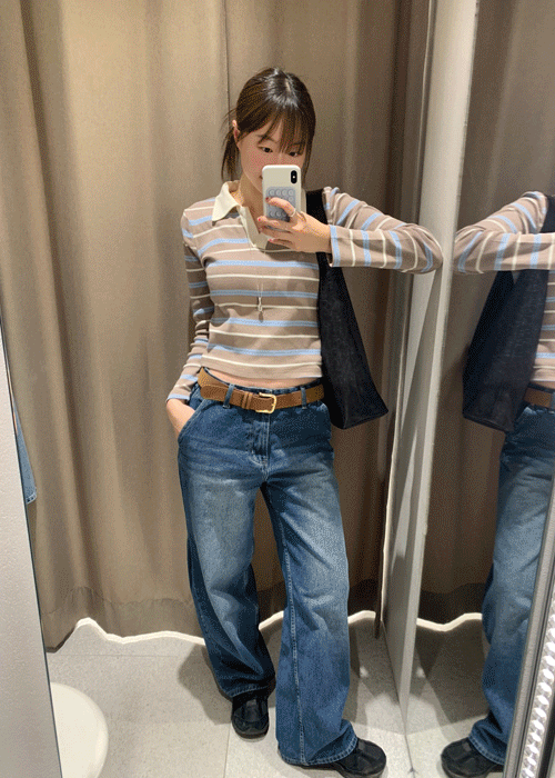 쿠크 스트라이프 슬림 카라티 (3 color)